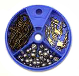 75 TOTAL PIECES, INCLUDING: 4 - SIZE 7 SNAP SWIVELS 4 - SIZE 5 SNAP SWIVELS 7 - SIZE 2 ABERDEEN HOOKS 7 - SIZE 4 ABERDEEN HOOKS 7 - SIZE 6 ABERDEEN HOOKS 7 - SIZE 8 ABERDEEN HOOKS 3 - SIZE 2 BAITHOLDER HOOKS 3 - SIZE 4 BAITHOLDER HOOKS 5 - SIZE 6 BAITHOLDER HOOKS 4 - SIZE 8 BAITHOLDER HOOKS 24 - SPLIT SHOT