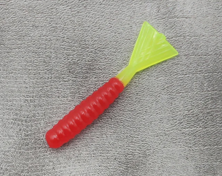 SOFT DURABLE PLASTIC, PADDLE TAIL, RIBBED BODY, RIG TO SWIM VERTICALLY OR SIDE TO SIDE.