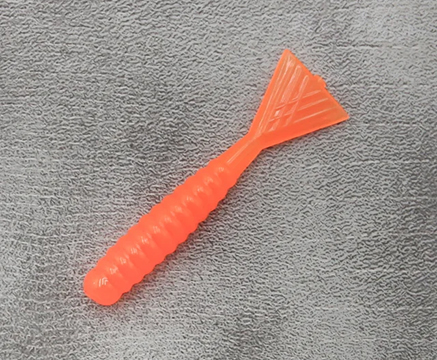 SOFT DURABLE PLASTIC, PADDLE TAIL, RIBBED BODY, RIG TO SWIM VERTICALLY OR SIDE TO SIDE.