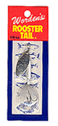 WORDEN'S ROOSTER TAIL IS ONE OF THE MOST PRODUCTIVE SPINNERS THE THE HISTORY OF FISHING. THE ROOSTER TAIL COMBINES AN ATTRACTIVE SPINNING ACTION WITH THE PULSASTING, SWIMMING MOTION OF THE COLORFUL HACKLE TAIL TO MAKE FISH STRIKE, MANY TIMES WHEN NOTHING ELSE WILL WORK.